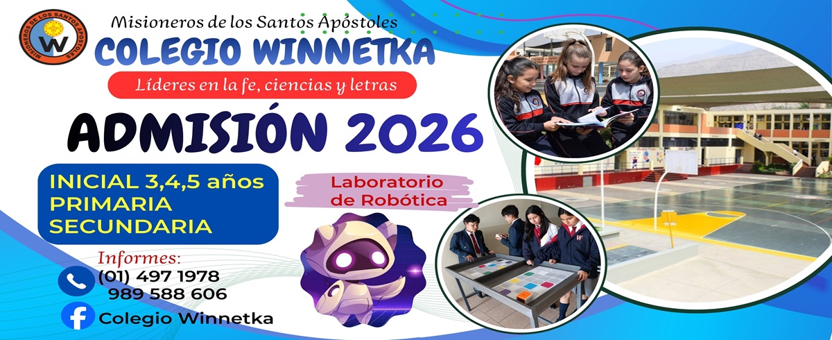 Día de las eleccionesPresentamos la oferta educativa de nuestro Colegio WINNETKA, son 72 años de servicio a los niñ@s, adolescentes y jóvenes de la localidad de Chaclacayo y alrededores. La presencia de la Congregación Religiosa de los Misioneros de los Santos Apóstoles, como los promotores de nuestra institución, nos permite desarrollar una identidad y un carisma de servicio basado en la práctica de los valores cristianos. ¡Ser winnetkino es dar lo mejor!